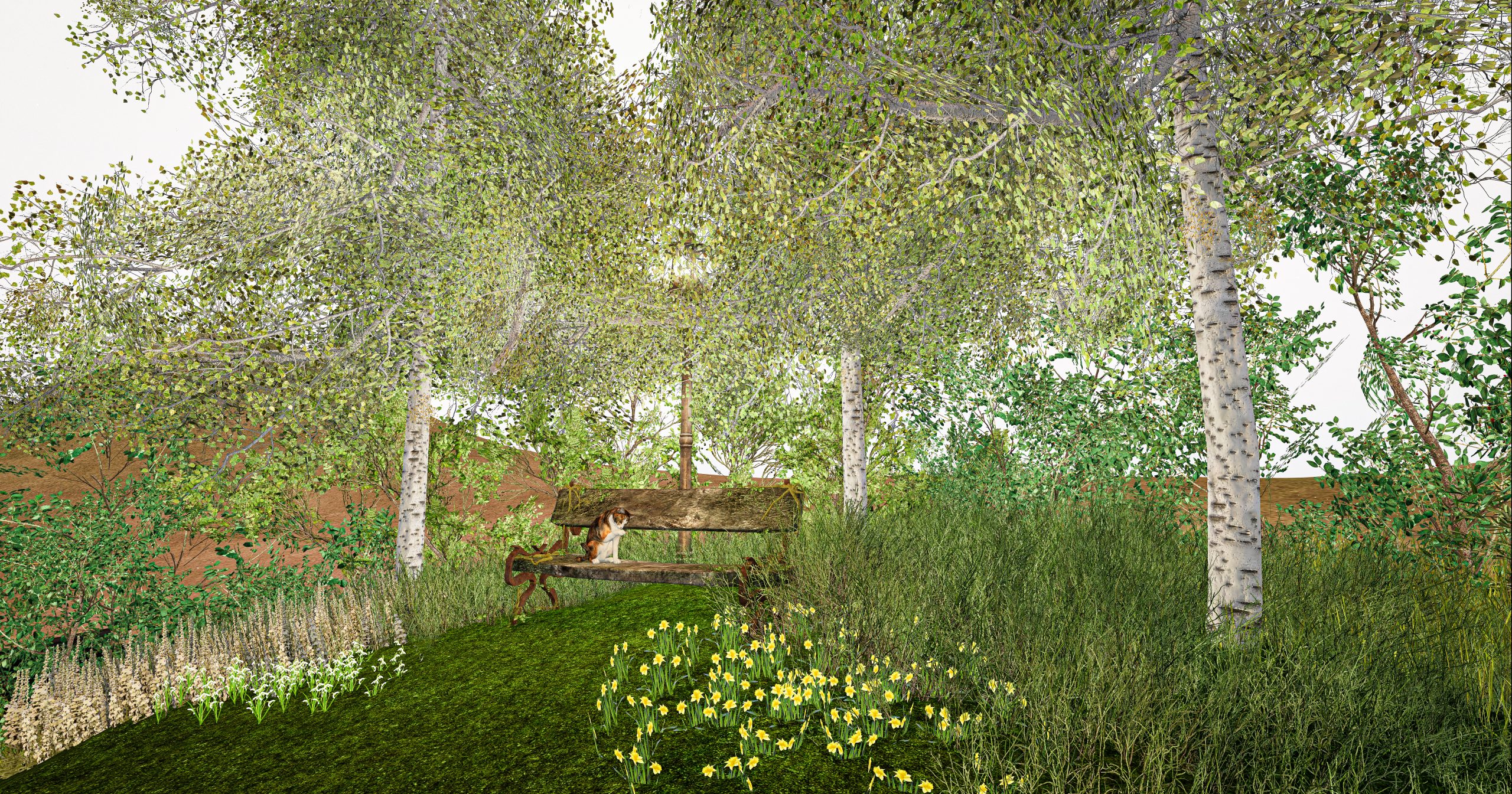 The birches wear a delicate green, almost transparent in the morning light. At their roots, the first flowers bloom – timid yet full of hope.