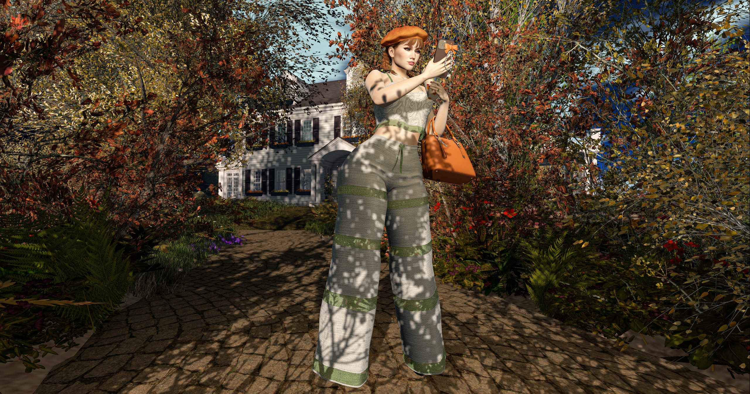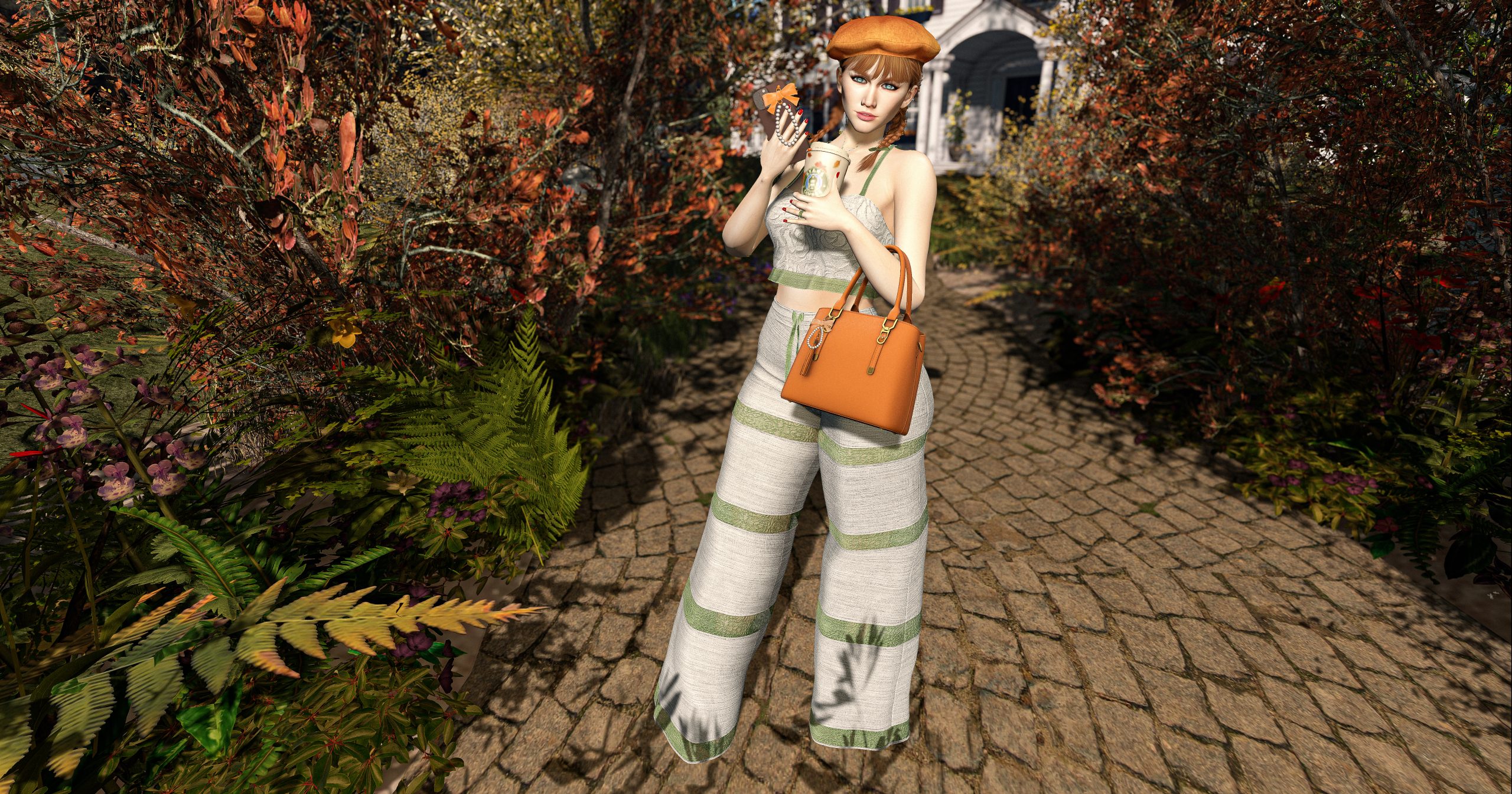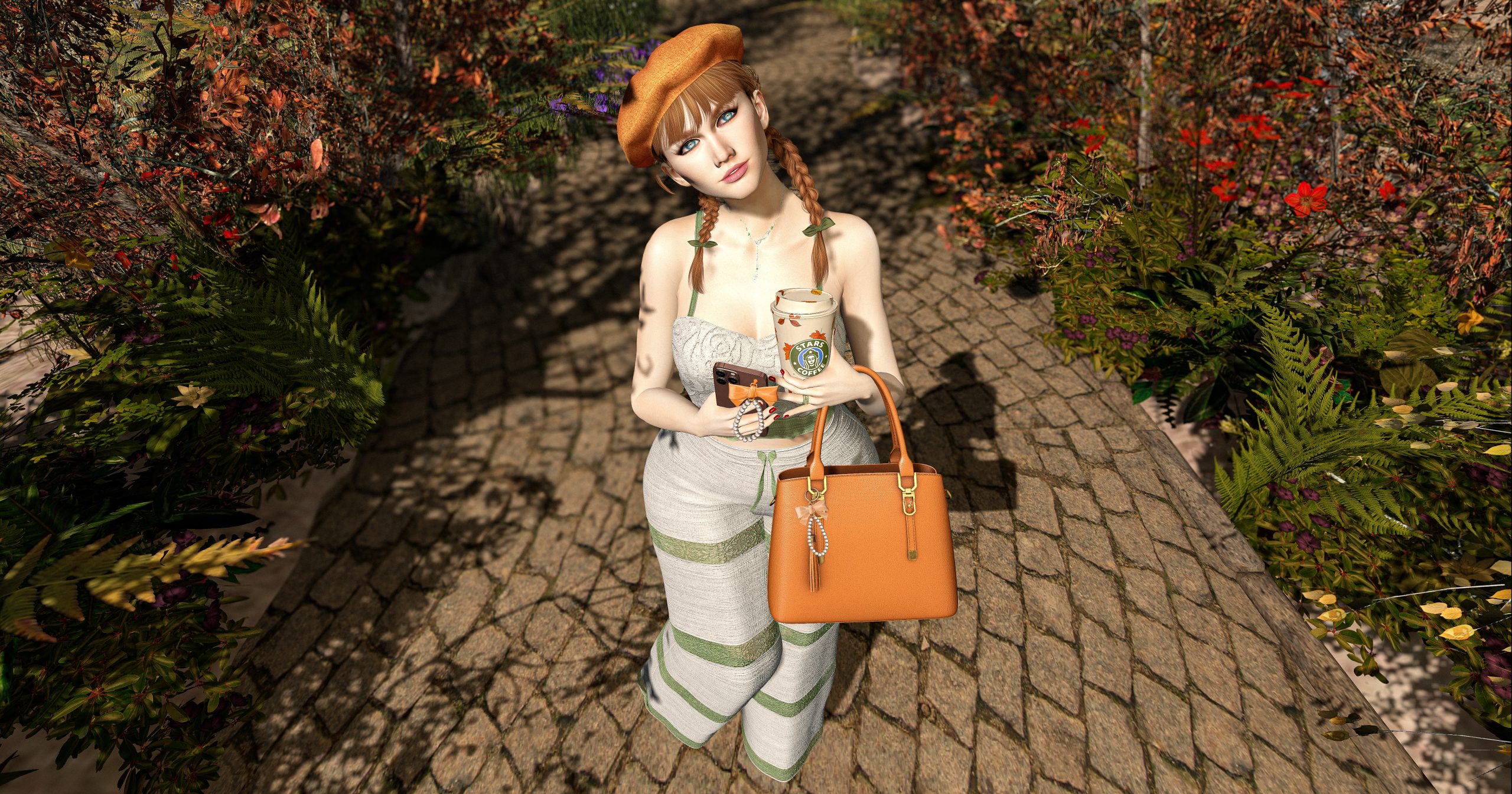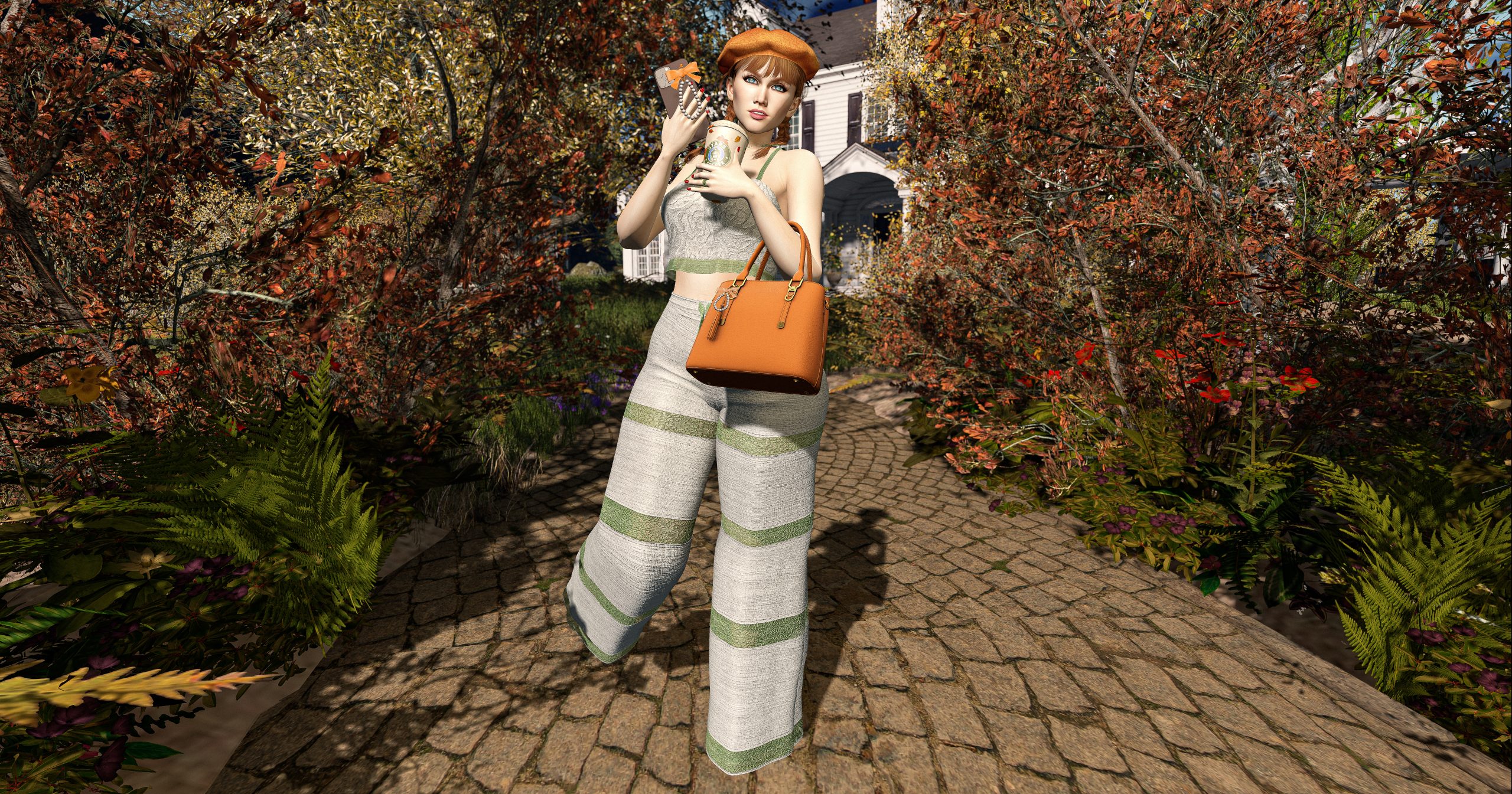 In her hand, the familiar comfort of a pumpkin spice latte — not so much a drink as a ritual, a gentle reminder that transitions can be sweet. The day didn’t require much: a walk, a thought, the soft rhythm of her steps. The little details — a flash of orange, a hint of green woven through fabric — felt like echoes of the landscape around her.