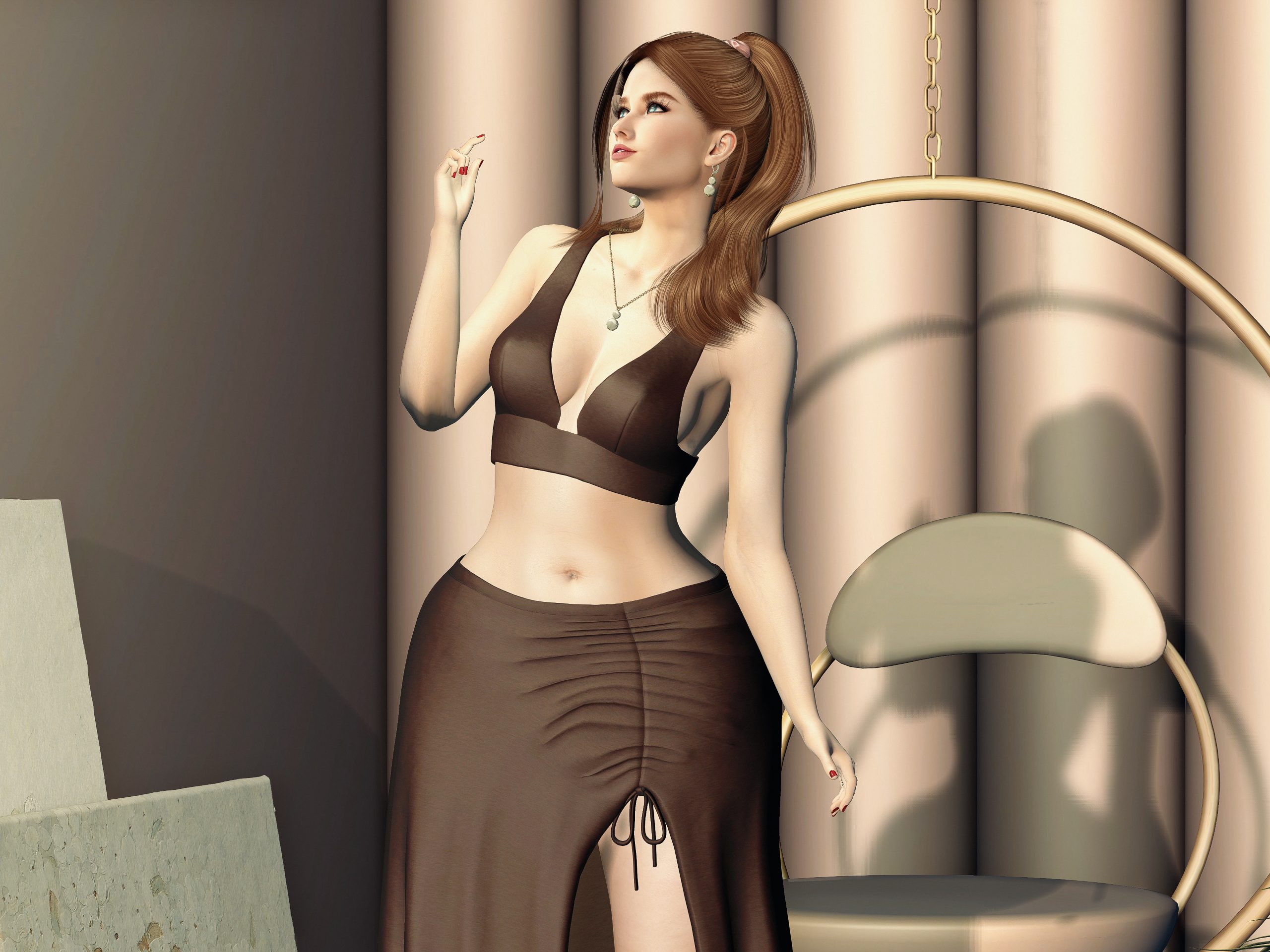 It´s not a look made to shout, but to linger—an elegance that whispered. The slit of fabric revealed movement, the quiet promise of freedom, while the fitted top spoke of strength. Every detail balanced between restraint and allure, like a story told in a single shade.
